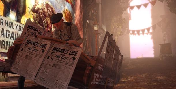 En el juego vemos una clara referencia a EUA, con relación al patriotismo tan aferrado que tiene ahí. La historia nos cuenta sobre una guerra civil que se esta dando en el año de 1912 en Columbia,ue se esta dando entre los Ultranacionalistas y los autonombrados VOX POPULI. La verdad es que vemos el uso de algunas armas, y pues no me queda claro si son o no plásmidos los que se usan, o solo son poderes.