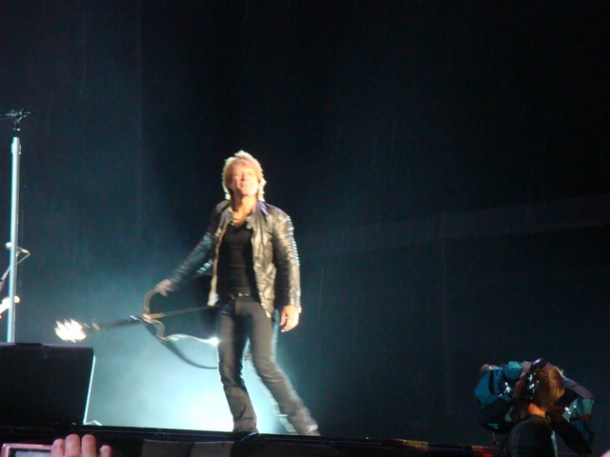 Estan conmigo alla afuera? Muestrenme lo que tienen decia Bon Jovi al interpretar uno de sus clasicos, You Give Love a Bad Name coreado por mas de 50 000 gargantas. Terminando la cancion el ambiente bajo un poco gracias a la extraña  rola «En el sentido que en mi zona casi nadie conocia»  Whole Lot Of Leavin del album Lost Higway,  que si la conocian no coreaban mucho, ademas de todas  esta fue la que menos me gusto.