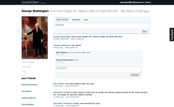 Cómo se darán cuenta Diaspora es de lo más sencillo que puedas encontrar, los datos siempre estarán ahi y no se irán cada que el servidor falle, imaginense los post, las imágenes, datos personales quedarán almacenados en el servidor( todo en un lugar y aparte sólo lo podrán veran quien tenga que verlos), no más. Qué buena Opción existe para quitar a Facebook, porque muchos usuarios se quejan que expongan su cosas en el mundo del espectáculo, además que no tiene varias opciones que requerimos como usuarios.