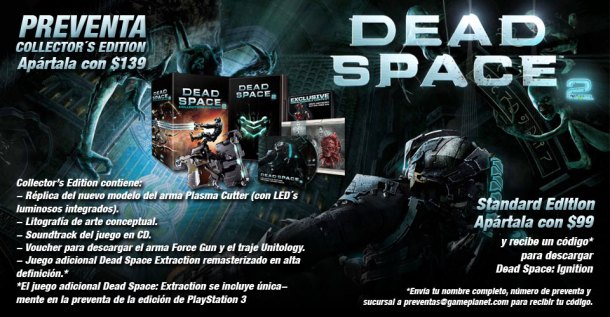 - *El juego adicional Dead Space Extraction se incluye únicamente en la preventa de la edición de Playstation 3