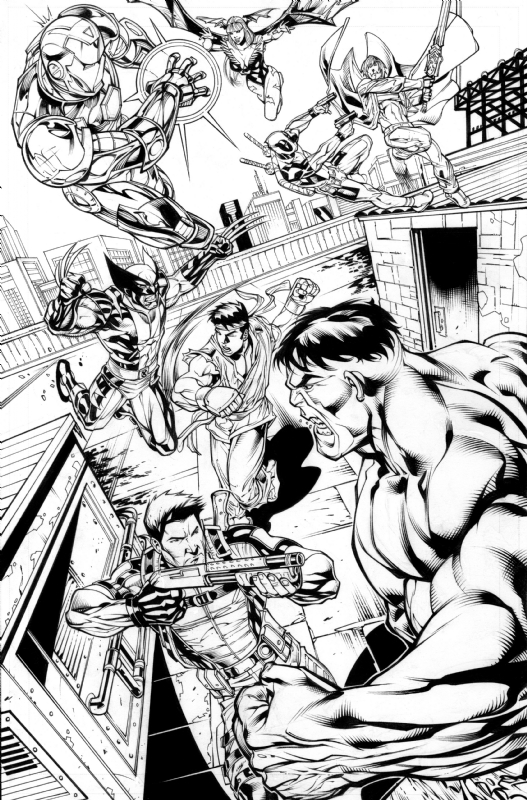 Bien, pues el artista Kevin Sharpe hizo publico en su sitio de Internet un arte conceptual de un comic que al parecer es este (OJO: Son puras especulaciones de un servidor, puede que estas imágenes correspondan ya sea a este comic que mencione con anterioridad, o pueden ser de otro comic que seguramente sacaran mas adelante) y que sorpresa nos sacaron estas imágenes ya que se podría decir que este comic hace «oficial» el rumor de una lista filtrada por Internet que nos decía cual era el ultimo set de peleadores de este juego.
