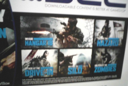 Y para que los Trolls (Trollsmith) no empiecen, este es un rumor, muy fuerte ya que hasta vídeo hay. El caso es que se filtró un «flyer» o un «volante» de Gamestop en el cual se nos muestra una imagen de los 5 mapas que estarán disponibles en el próximo DLC de Black Ops. Como ya es costumbre (por lo menos en Black Ops) el DLC contará con 4 mapas para el On-line competitivo, los cuales se llamarán Hangar 18, Silo, Hazard y Drive-In y 1 mapa de Modo zombies el cual todavía no tiene nombre. Cabe mencionar que está imagen fue encontrada gracias a la gente de Black Ops 24/7. ¿Qué opinan fans de Call of Duty:Black Ops? ¡Comprarán este tercer DLC? Por mi parte yo digo: No gracias, Bobby Kotick. Está vez mi dinero no será tuyo.