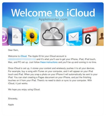 En el mail se menciona un numero de de ID de la cuenta de iCloud además se explica brevemente que una vez que este sea puesto en marcha, podrán sincronizarse inalámbricamente todo nuestros gadgets de la familia Apple.