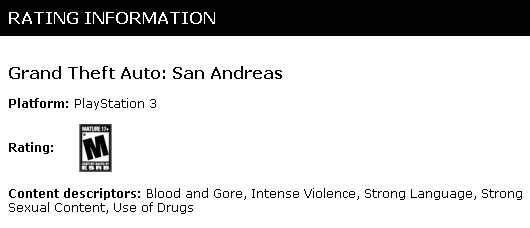 La organización que clasifica por edades los videojuegos (la ESRB) ha publicado en su catálogo online a Grand Theft Auto: Vice City y Grand Theft Auto: San Andreas que estará disponible en PlayStation 3.
