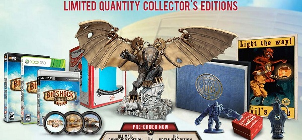 Ahora, se quiere repetir la historia con BioShock Infinite que a pesar de que no se ha mostrado mucho, se ha creado un hype impresionante hacia el juego. Ahora se muestran imágenes de lo que son los Pack Edición Especial que tendrán un costo de 79.99 y 149.99 dolares, la diferencia entre una y otra es la figura de SongBird. Esto es lo que tendrá las ediciones.